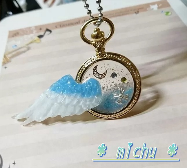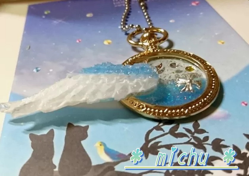 懐中フレームに羽を添えてみました。