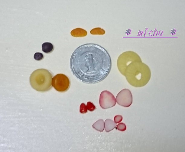 粘土で作られたミニチュアフルーツ。