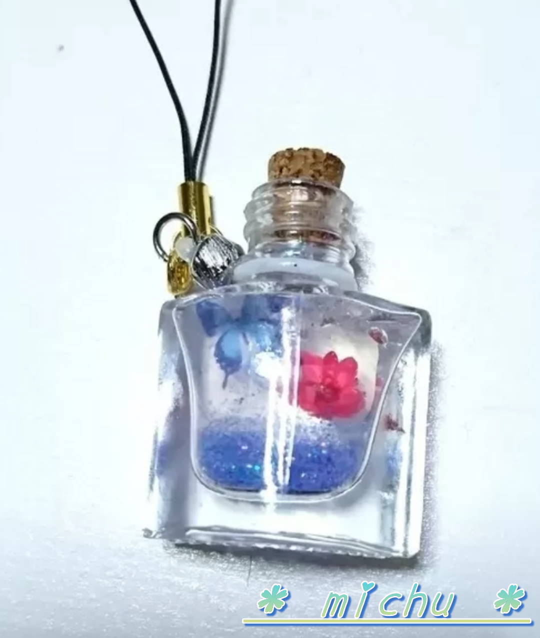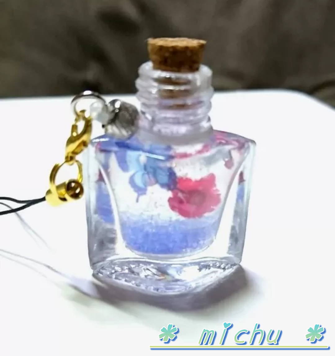 金具つけれるところあるから、小さいチャームつけて