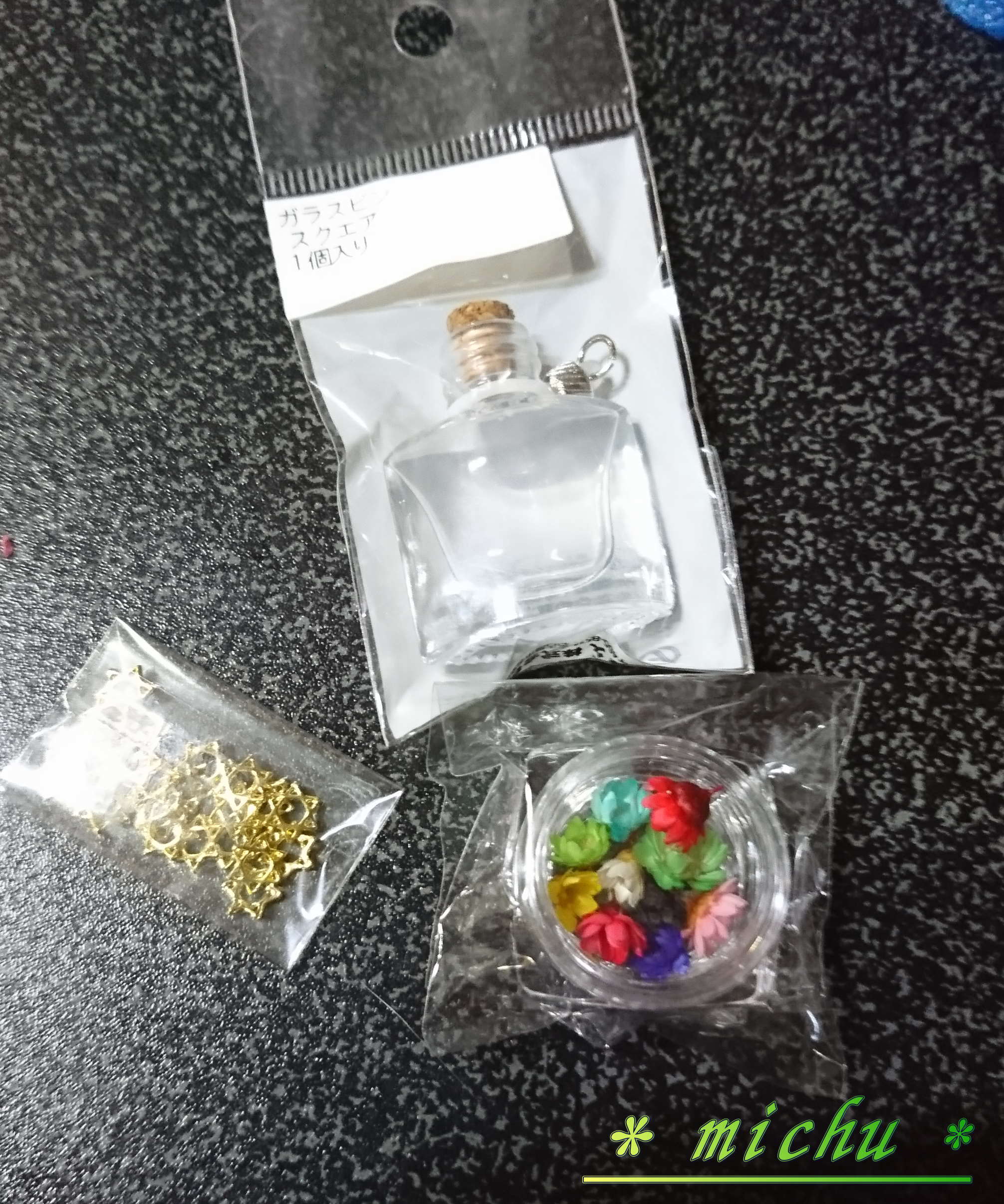 六芒星のパーツと、ドライフラワーと瓶!