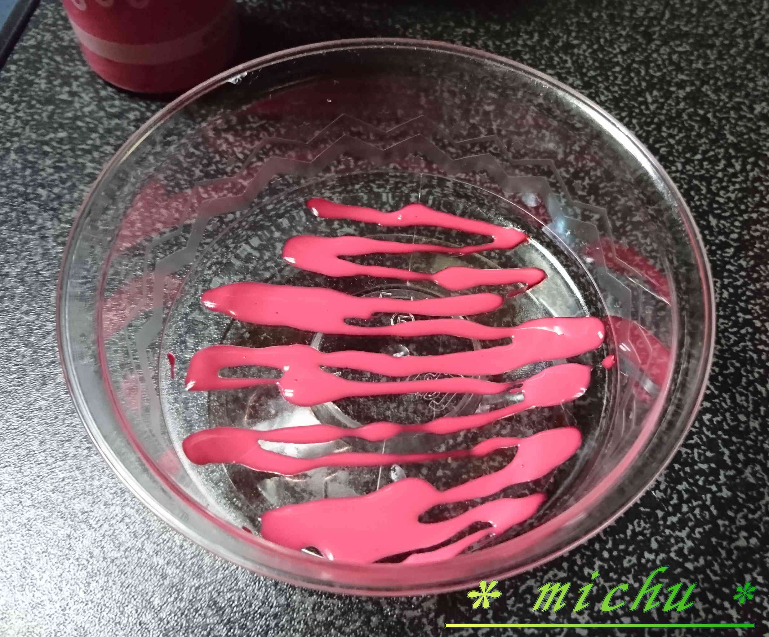 真ん中を塗料と顔料で着色して