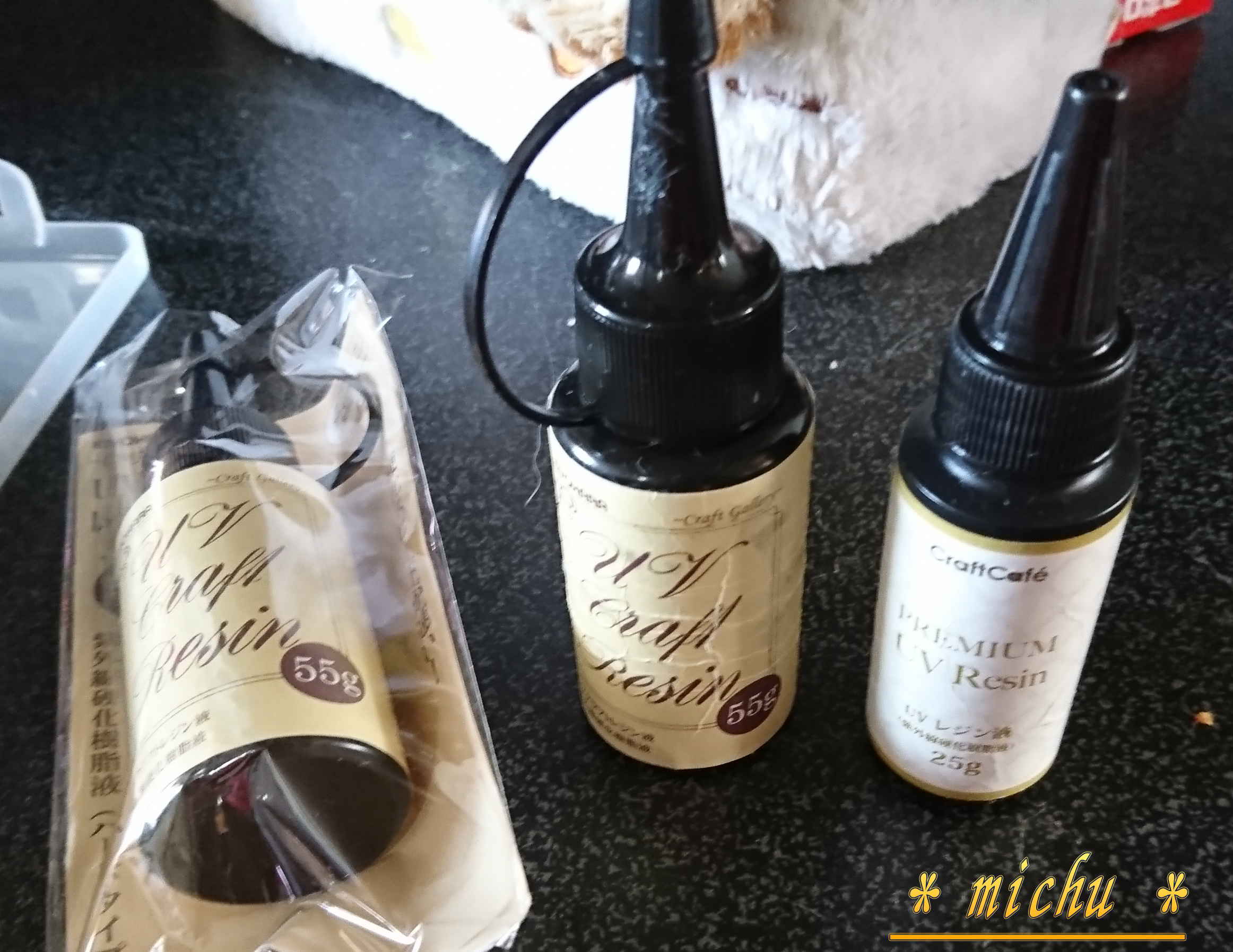 左にはKIYOHARA社のレジン液。