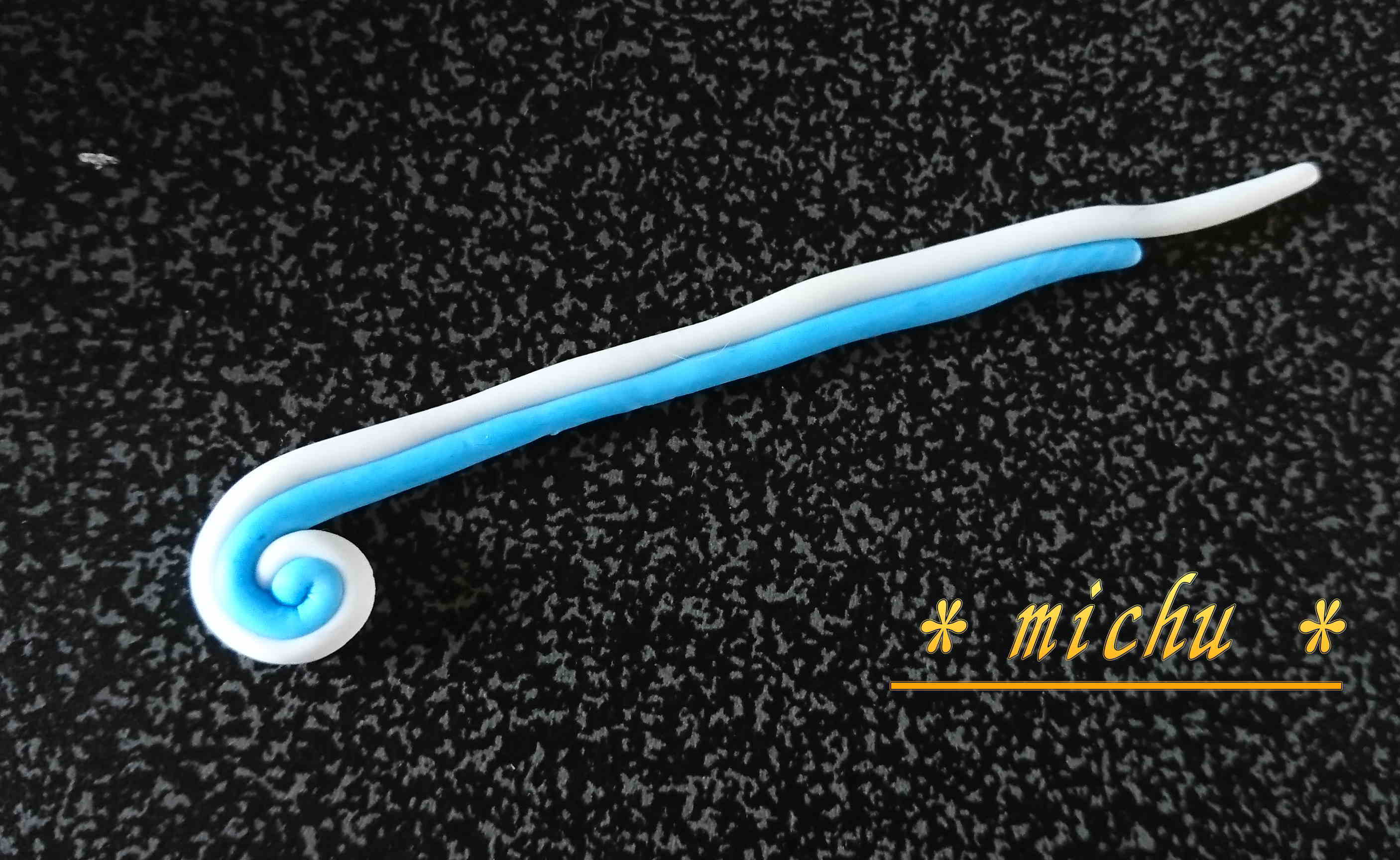 このとき、粘土が千切れないように注意!